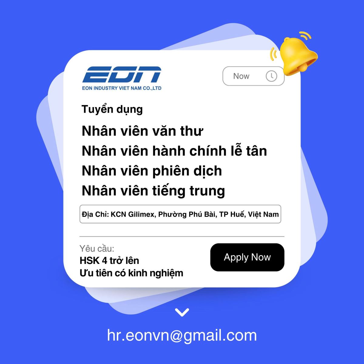 Công ty EON Industry Việt Nam hiện đang mở rộng quy mô và cần tuyển dụng các vị trí sau: