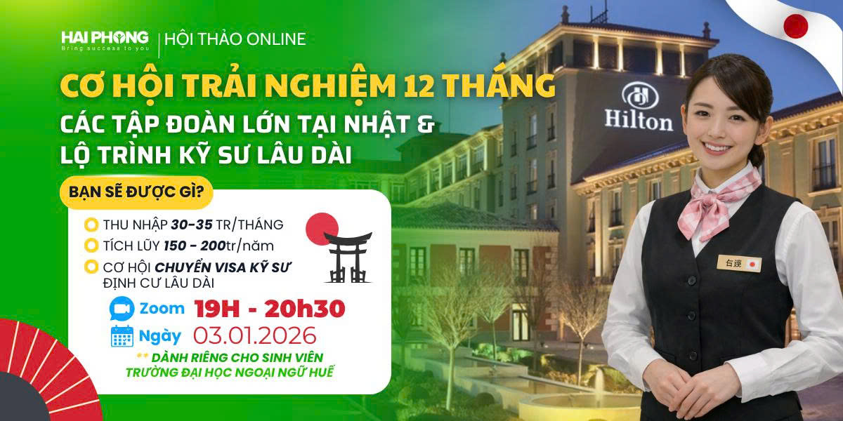 HỘI THẢO TRỰC TUYẾN: CƠ HỘI VIỆC LÀM 12 THÁNG TẠI CÁC TẬP ĐOÀN LỚN NHẬT BẢN