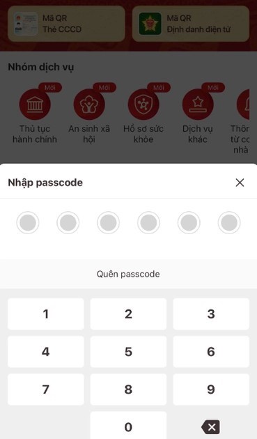 Bước 4: Nhập passcode 6 chữ số của mình để truy cập.