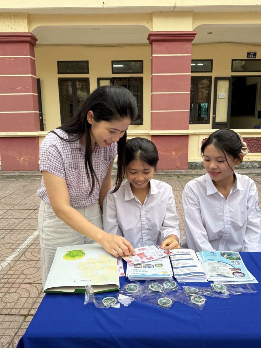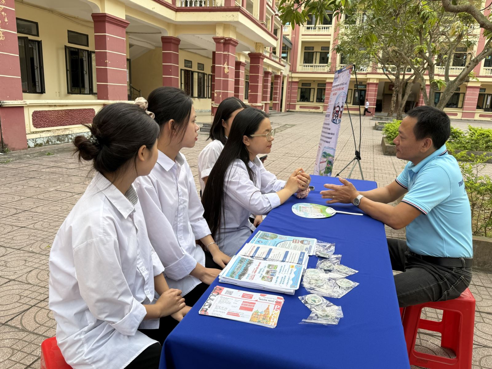 Bên cạnh đó, đoàn công tác đã trực tiếp truyền tải thông tin tuyển sinh đến học sinh thông qua nhiều hình thức như đặt bàn tư vấn tại sân trường và vào lớp học để tư vấn trực tiếp. Các nội dung tư vấn tập trung vào phương thức xét tuyển, ngành đào tạo, cũng như cơ hội học tập và việc làm sau khi tốt nghiệp.