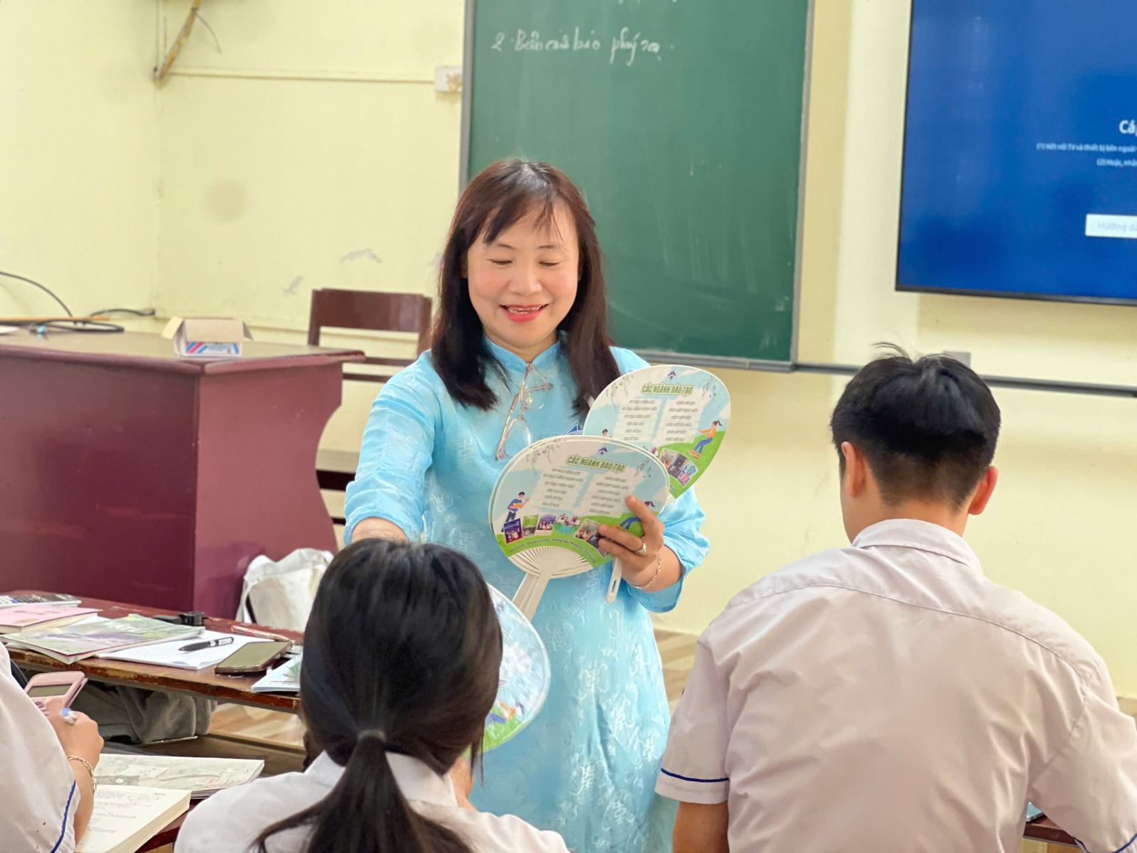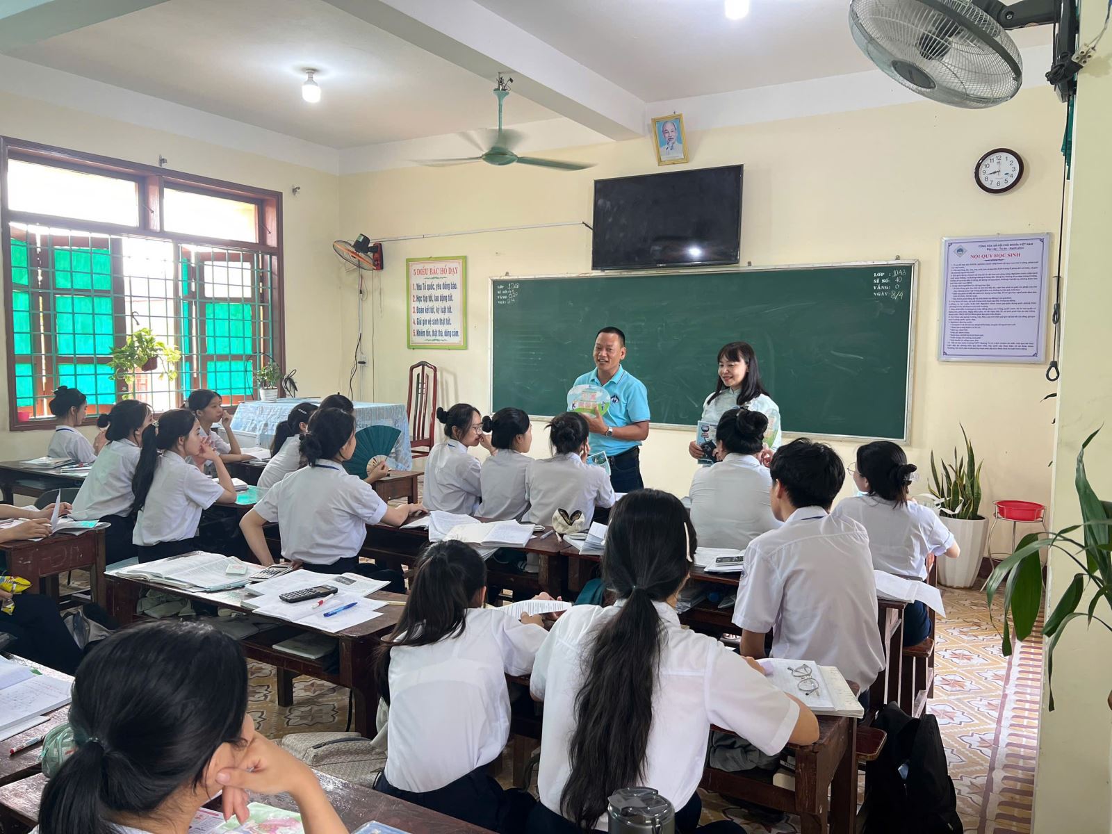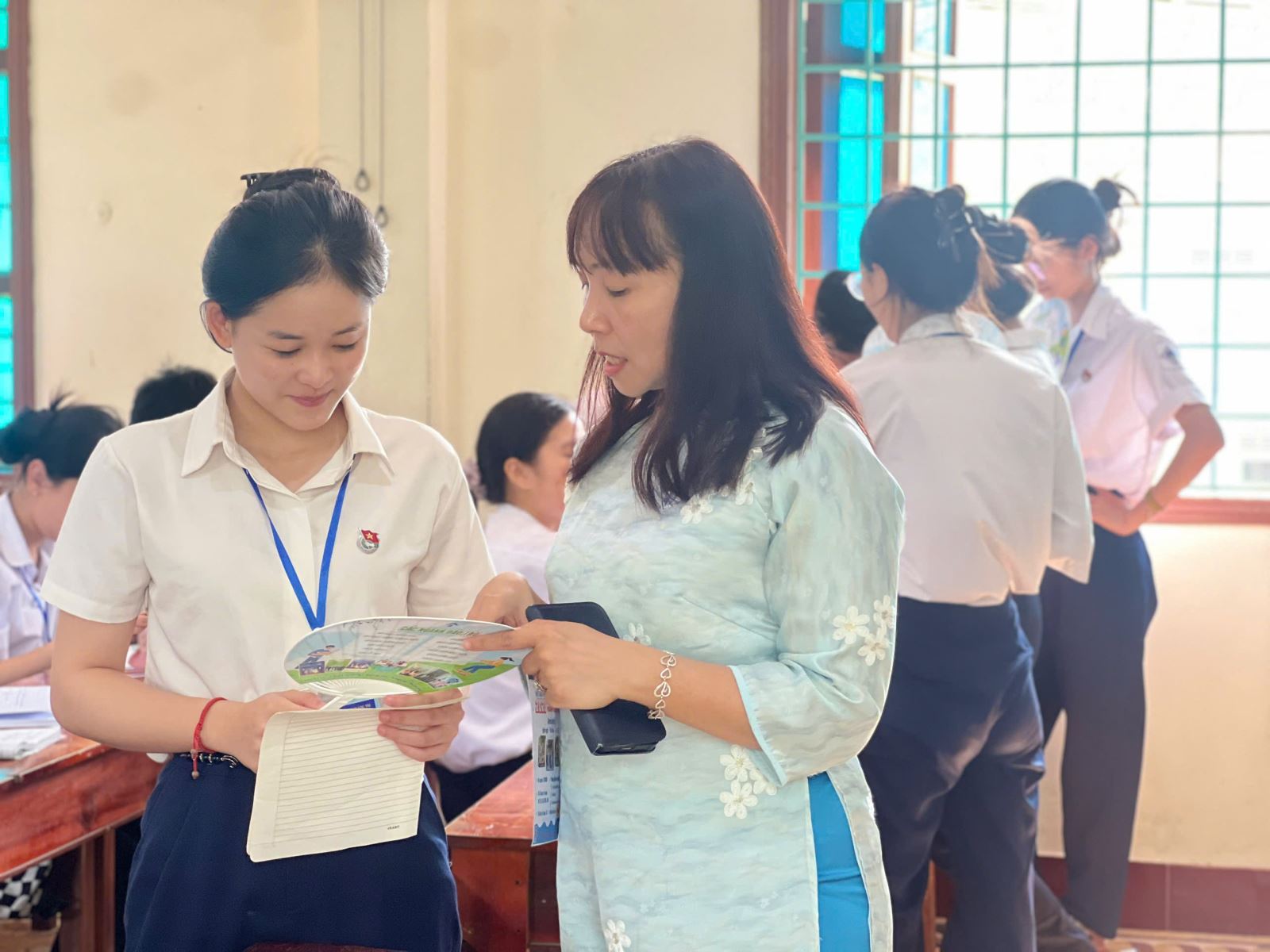 Không dừng lại ở đó, đoàn còn trực tiếp vào lớp học để giao lưu, trao đổi cùng các bạn học sinh. Những câu hỏi xoay quanh lựa chọn ngành học, phương thức xét tuyển, môi trường học tập và cơ hội nghề nghiệp đã được giải đáp một cách cụ thể, gần gũi. Sự tương tác cởi mở đã tạo nên bầu không khí hào hứng, giúp học sinh tự tin hơn trong việc đưa ra quyết định cho tương lai.