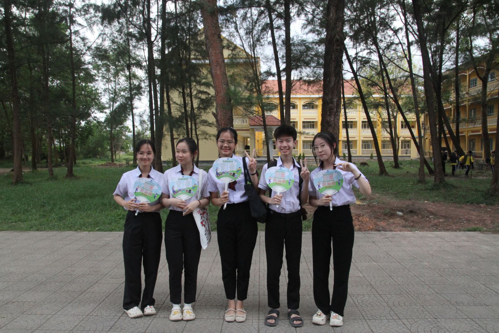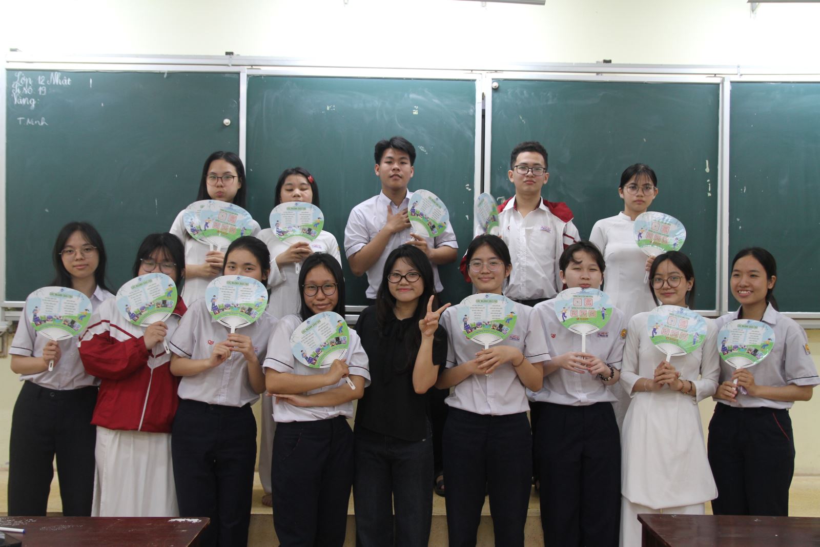 TS. Hoàng Thị Thu Hạnh chụp ảnh lưu niệm cùng các bạn học sinh Trường THPT Phú Bài