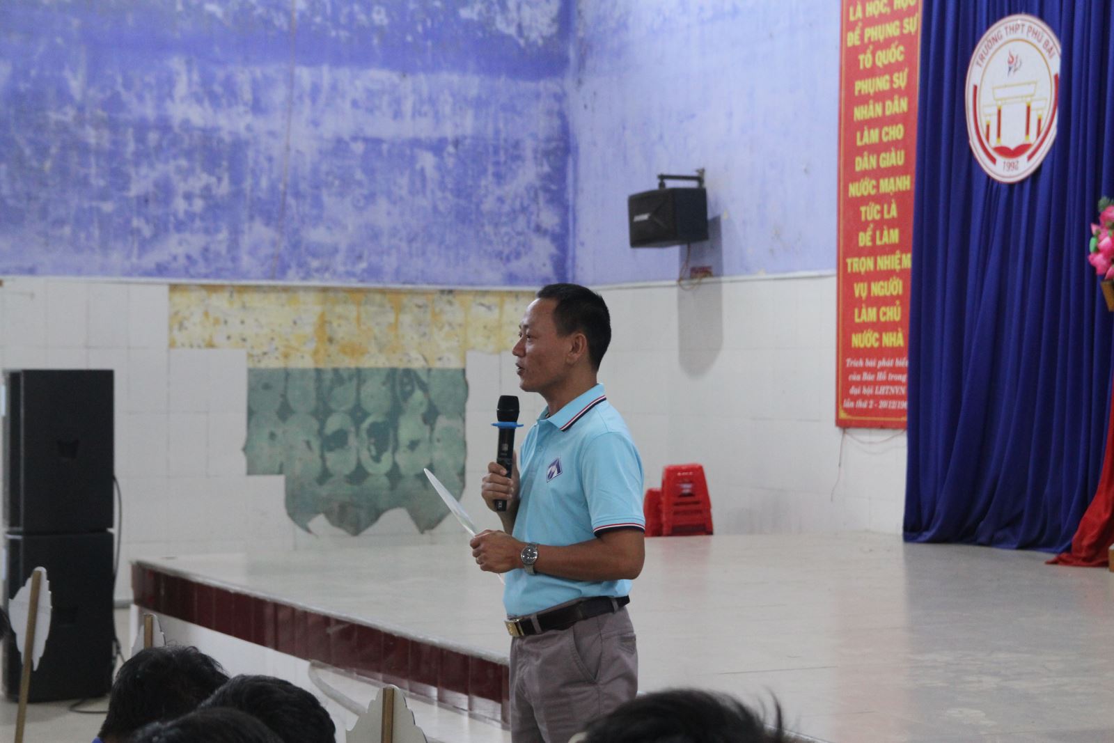 ThS. Bùi Hữu Hùng - Chuyên viên Phòng Đào tạo tư vấn trực tiếp cho các bạn học sinh tại các buổi Hướng nghiệp
